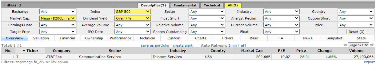 바로 AT&T(T)가 나왔습니다. 미국의 유명한 통신회사 주식이죠~