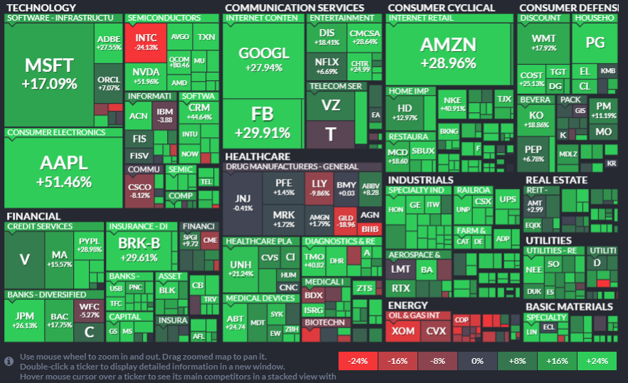미국주식 맵은 몇가지 섹터로 나누어져 있습니다.