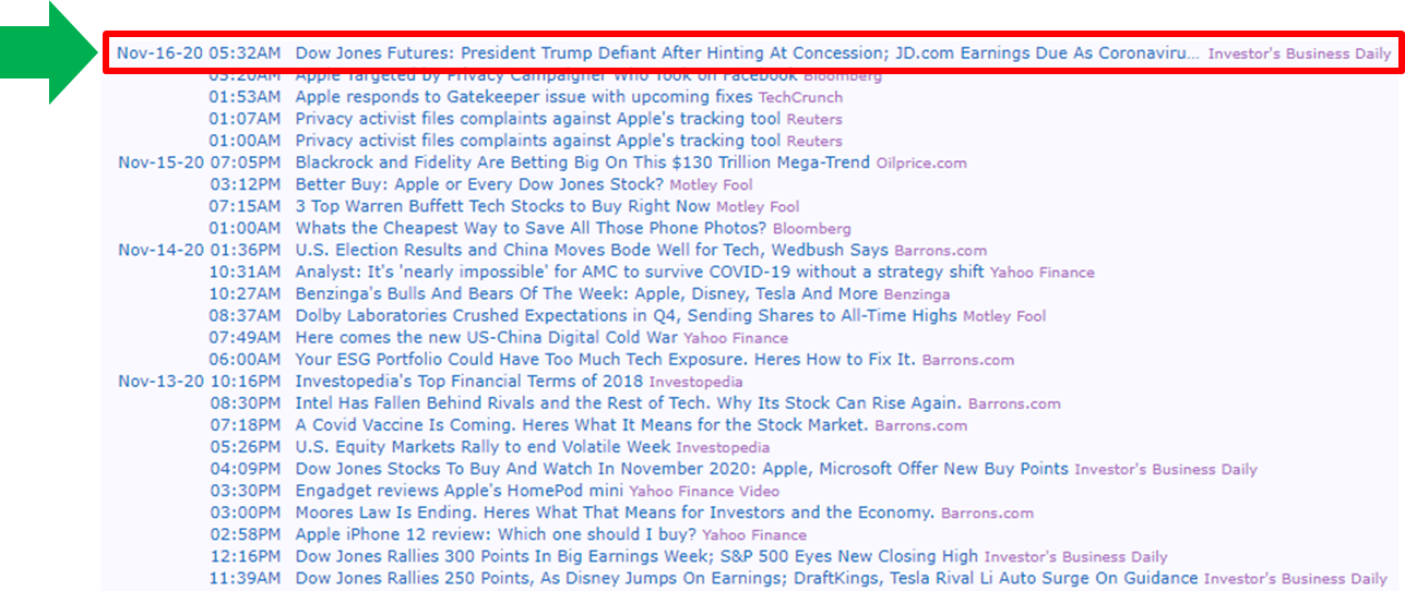 3) 해당 주식의 최신 뉴스 및 기사 확인 가능