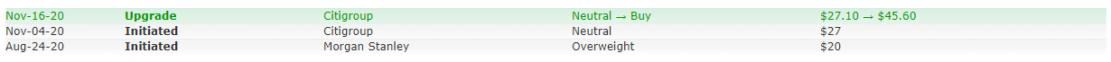 8월 24일 모건스텐리에서도 비중확대(Overweight)의 의견을 제시하면서 최초 가격을 20 USD로