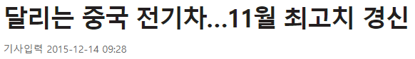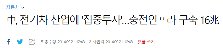 먼저 2014년 (약 6년전에 나온 기사) 에 중국 전기차 산업에 '집중투자' 라는 뉴스 기사를 보면