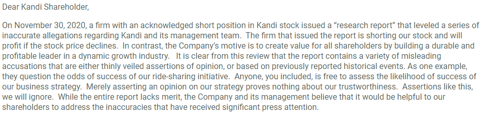 주주에게 힌덴버그 리서치의 주장이 사실이 아니라는 반박의 기사를 냈는데요,