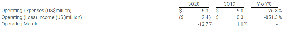 먼저 칸디의 20년 3분기 매출은 18.7M$ 이고, 이는 전년 동기 대비 40.9% 감소한 수치입니다.