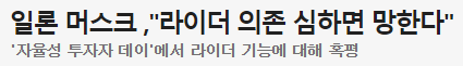 2) 테슬라의 CEO 일론머스크의 라이다에 관한 발언입니다.