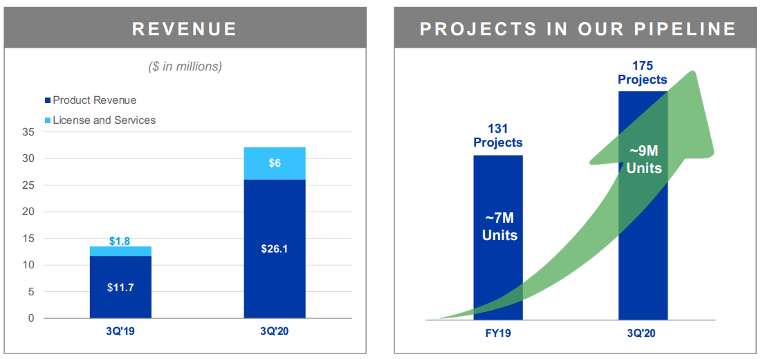 19년 3분기 매출은 제품 판매로 인한 매출 11.7M USD와 라이센스 및 서비스를 통한 매출은
