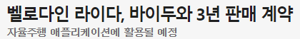 체결을 하였습니다. 서두에도 말씀 드렸다시피, 바이두는 2016년 부터 벨로다인에 전략적인 투자를 행해오는