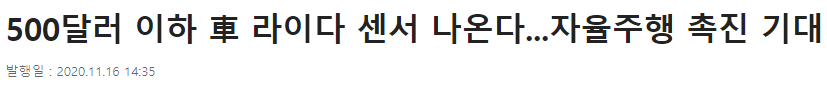 해당 기사는 현대차의 제너시스 G90에 라이다 2개를 단다는 기사인데,