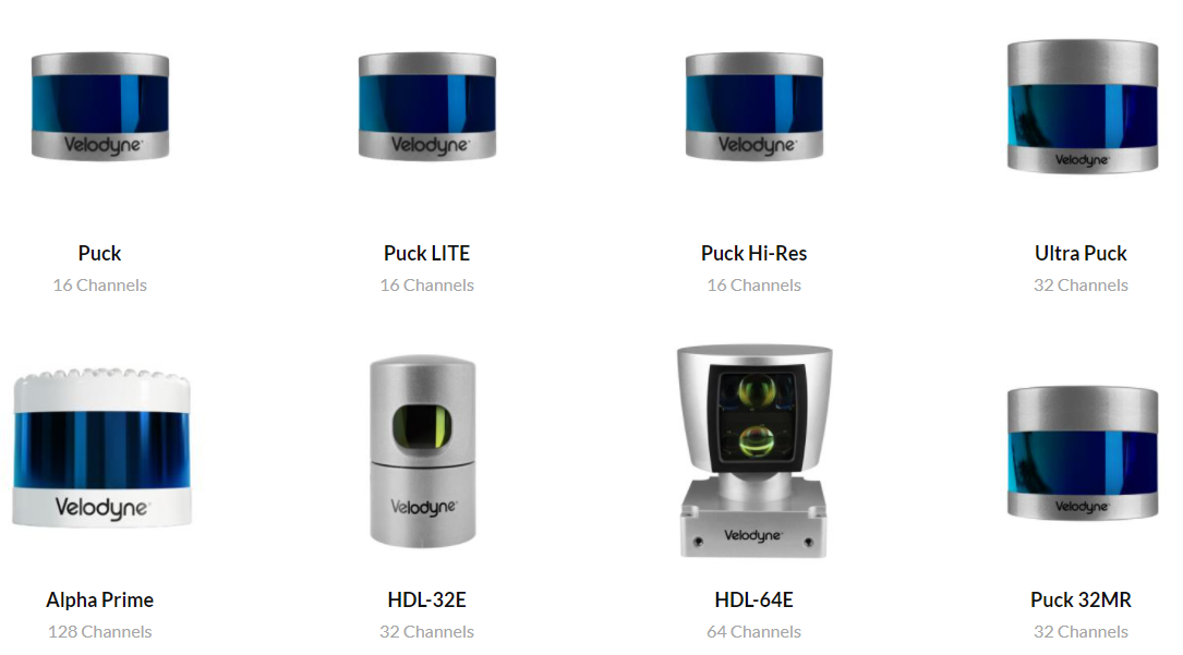 HDL-64E, HDL-32E, VLP-16, VLP-32 및 VLS-128 등이 있습니다.