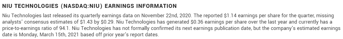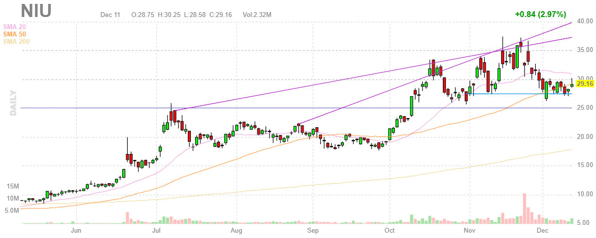 니우는 `20년 12월 12일 기준 29.16 달러의 주가를 기록하고 있습니다.