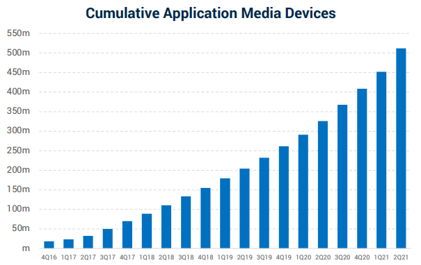 16년 4분기 몇 백만 수준의 앱 설치가, 20년 4분기 4억개의 앱이 설치될 정도로 급속한 성장을 하고 있는