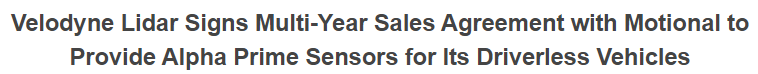 알파 프라임(Alpha Prime) 센서를 자율주행 연구회사인 "모셔널(Motional)과 판매계약을 체결하였다는