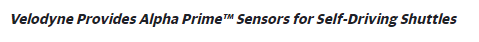 벨로다인의 Alpha Prime 센서를 May Mobility 에게 판매한다는 판매 계약을 발표하였습니다.