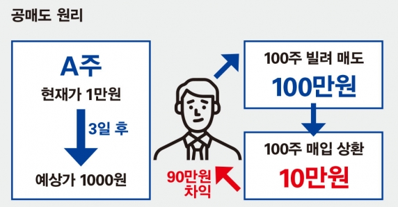 "공매도"란 가격 하락이 예상되는 경우 증권을 빌려서 매도를 하고
