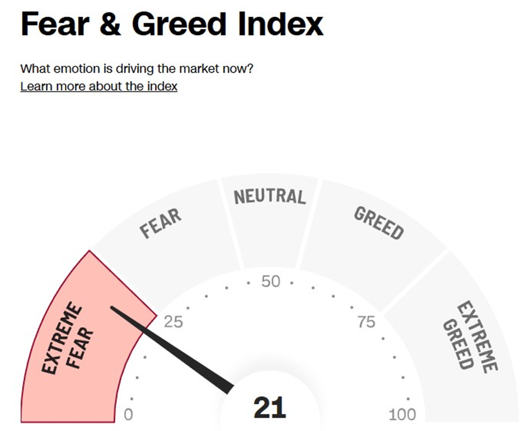 또한 탐욕 공포 지수도 21을 기록하는 등 투자자의 멘탈이 흔들리고 있는 건 사실 이니다.